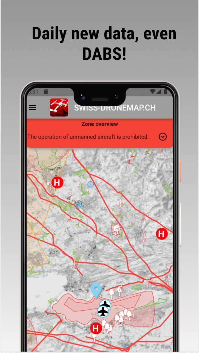 Die TCS-Drohnen-App ist die einzige App auf dem Markt, welche aktuelle NOTAM (Notice to Airmen) Informationen in ihrer Flugkarte tagesaktuell darstellt. Dadurch vergrössert sich das Fluggebiet für den Drohnenpiloten, da nur aktive Beschränkungen angezeigt werden und gleichzeitig wird dadurch die Sicherheit für den Drohnenpiloten selbst und andere Piloten der bemannten Luftfahrt erhöht.