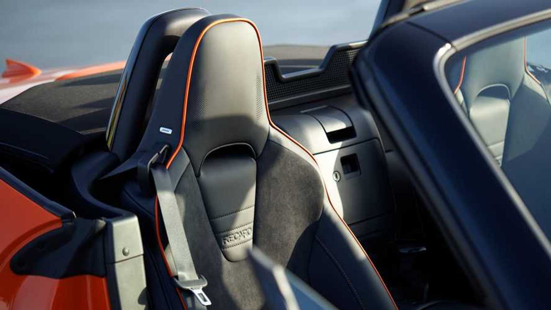 Im Innenraum setzt sich das Thema mit orangefarbenen Akzenten auf den Türverkleidungen, den Lüftungsdüsen und den Nähten der Alcantara-Sitzbezüge und des Lenkrads fort. Die Sitze selbst sind Recaro-Sportsitze, die einen hervorragenden Halt bieten und sowohl für den Alltag als auch für sportlichere Fahrten ideal sind. Darüber hinaus verfügt das Jubiläumsmodell über ein Bose-Soundsystem mit neun Lautsprechern, das für ein immersives Hörerlebnis sorgt, sowie über Apple CarPlay und Android Auto für verbesserte Konnektivität und Medienzugriff.